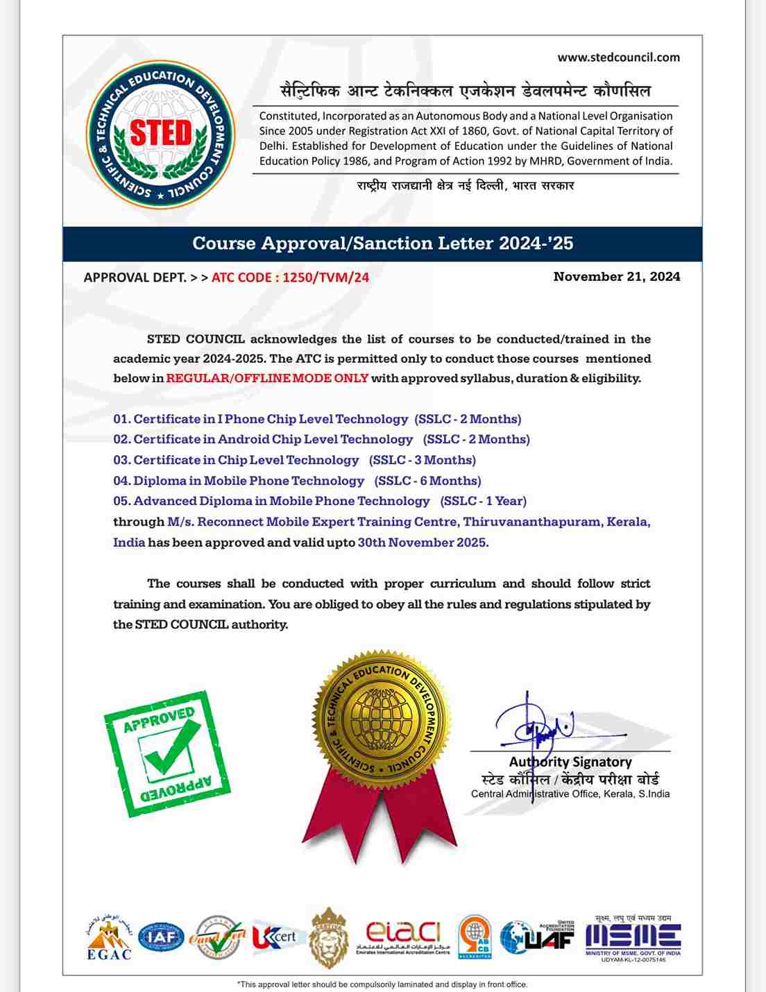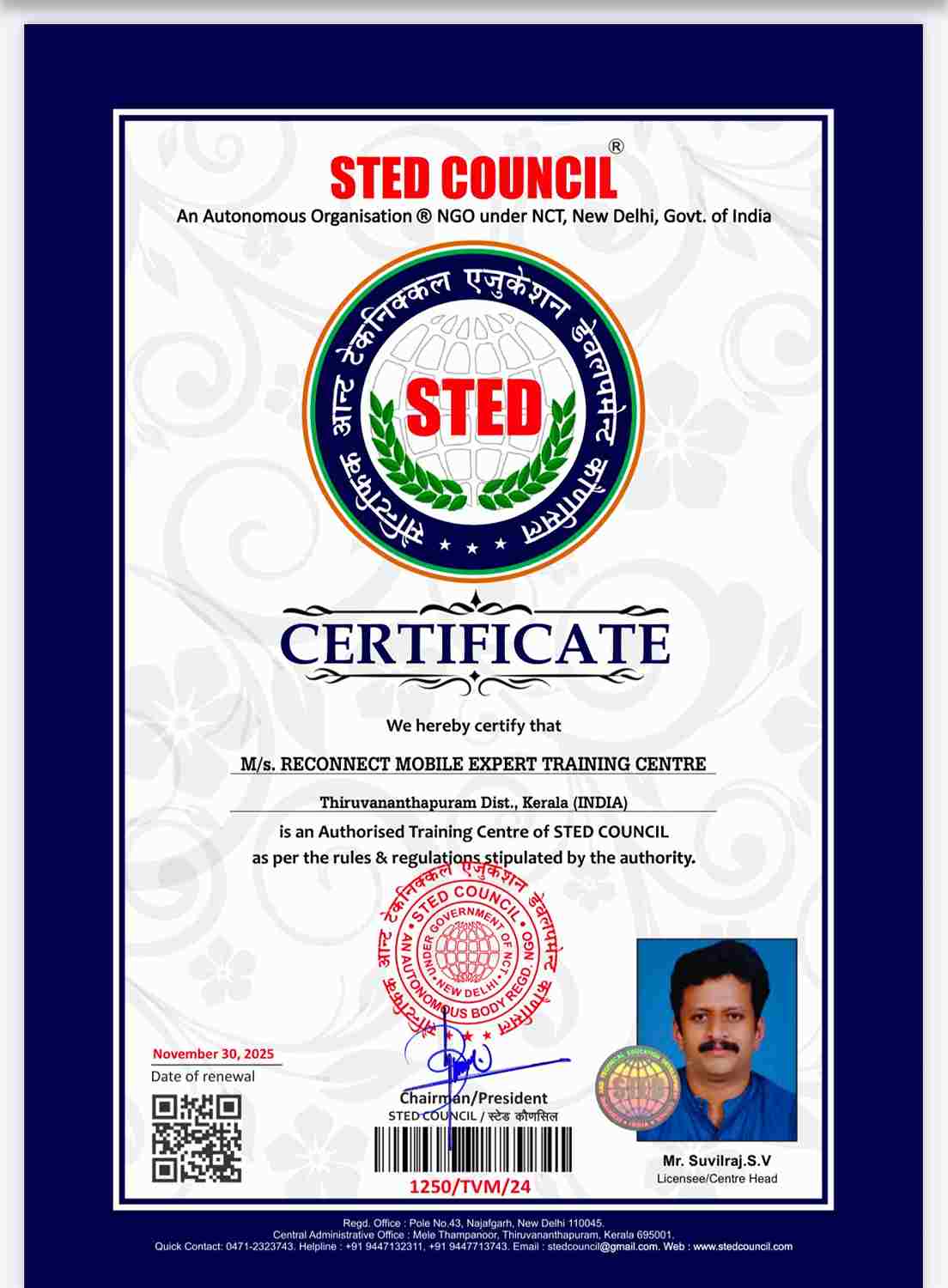 We offer certified, industry-focused mobile training courses in servicing and chip-level repair, designed for students, job seekers, and aspiring entrepreneurs. As an authorized training center under the STED Council, New Delhi, our courses follow government-approved standards, making them recognized and valid throughout India. We take pride in delivering programs that meet the growing demand for skilled mobile technicians in today’s fast-paced tech industry. Delivered in offline/regular mode, each course blends theory with practical sessions, helping learners gain valuable skills that prepare them for job opportunities and entrepreneurship.